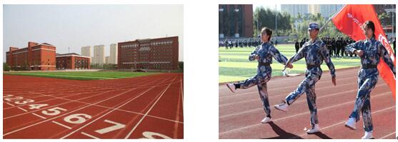 室外综合体育场是集各类教学、训练、比赛、军训、各种大型室外活动、课外体育活动为一体的室外体育运动综合训练场,承担田径、足球、手球、门球、户外游戏运动、民族传统体育等课程的教学。室外训练场全天候开放,为学生提供充足的训练场地,保障学生的训练质量,同时可以进行户外体育教学和赛事管理等实训项目。